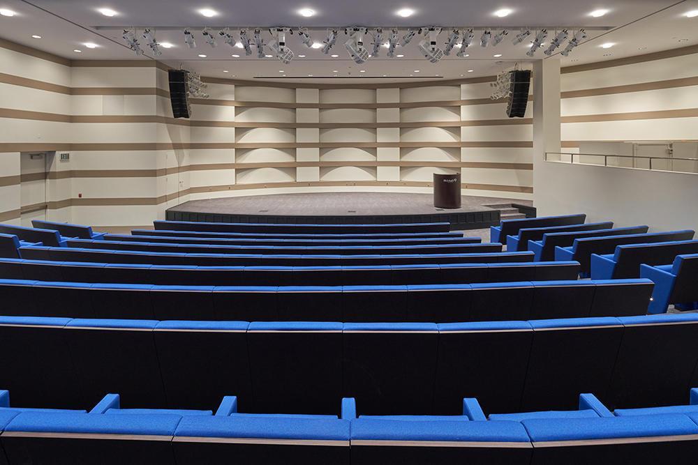 Located in the Santa Monica Mountains, the Magnin Auditorium at Skirball Cultural Center is a bright, and modern space with theater-style seating and a nearby green room.